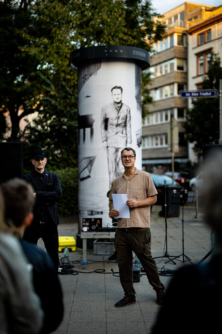 Felix Hartlaubs kurzes Leben und sein ungeklärter Tod in den letzten Kriegstagen hinterließen einige Geheimnisse. Daniel Hartlaub plant nunmehr einen Film über seinen 1945 in Berlin verschollenen Onkel, und die KunstSäule beleuchtet dieses Filmthema in einer besonderen Kooperation mit dem englischen Künstler Keith Rodway. Im Frühjahr 2025 haben die beiden Künstler in England bereits eine gemeinsame Schau zu Felix Hartlaub realisiert. Für den Felix-Hartlaub-Film plant sein Neffe eine animierte Imaginationsebene, die teilweise auf der KunstSäule zu sehen ist. In den Bildern von Hartlaub oszilliert Felix Hartlaubs Leben zwischen Kunst, Krieg und NS-Regime. Die Litfaßsäule erinnert so an eine zerrissene Zeit, und Parallelen zu heutigen gesellschaftlichen Entwicklungen sind unübersehbar.